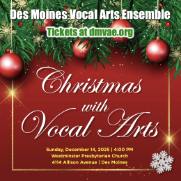 Celebrate the season with Christmas with Vocal Arts: Radiant Angels, Shining Light at Westminster Presbyterian Church. This beloved holiday tradition brings the soaring voices of the Des Moines Vocal Arts Ensemble to one of their most cherished stages, filling the sanctuary with warmth and wonder.